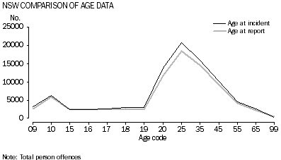 58 NSW data for 2012 has been produced on the basis of age of victim at the date an offence is reported to police (except for homicide and related offences). Previously NSW data has been produced on the basis of age of victim at the time the incident occurred. The impact on the data of the change in basis for compiling age data is minimal. As can be seen in the graph below the age profile of NSW victims overall is almost identical whether age at time of report or age at time the incident occurred data is used.