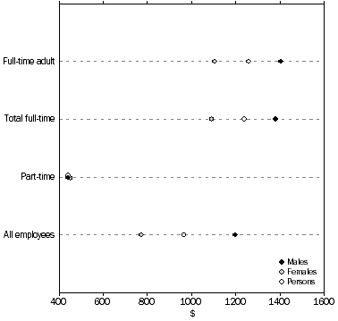 - Average weekly total cash earnings was $1258.60 for full-time adult employees, $1239.30 for all full-time employees and $440.40 for all part-time employees.