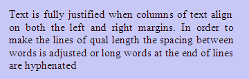 Text is right aligned (justified) left ragged when only the right margin follows a straight line. Word spacing remains constant, the left margin remains ragged, and the line begins at the word break nearest to the maximum line width, as in Diagram 5.4.