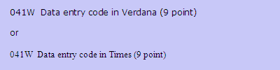 On forms using Times, use 9 point Verdana for all processing codes; on forms with Verdana, use 9 point Times. Whichever font you use ­ plain, italics, bold or bold italics ­ do so consistently so that the same function is always represented in the same font (see Diagram 5.22). It is preferable that data entry codes are printed in drop-out colour so they are less obvious to respondents.