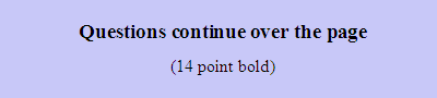 Where a note is required to tell respondents that 'Questions continue over the page', this instruction should be in 14 point bold type (see Diagram 5.26) in the bottom right hand corner of the page.