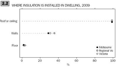 A large proportion of Victorian households have insulation, mostly in the roof or ceiling for reasons of comfort. Insulation in a dwelling contributes to comfort all year round, as well as reducing energy used for heating and cooling.