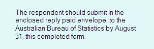 There is a myth in the ABS that respondents understand our definitions and jargon, and that our explanations are well understood. The evidence suggests that is not generally the case. For example, ask a small business respondent what the difference is between establishments and type of activity units? Chances are the respondent will have some difficulty in understanding these words, which are part of the ABS language, but not part of the respondent's. Words with precise definitions are an integral part of ABS forms. However, unless evidence from tests and evaluations shows that respondents understand the meaning, we must make the meaning clear in appropriate language. We cannot presume every respondent speaks our language. Obviously not every respondent will understand the meaning of 'bailment', or 'leverage lease agreement' for example. Use appropriate language to explain the meaning, or find a form of words which is clear to your respondents. Don't be concerned about 'talking down' or insulting the intelligence of respondents through simple language. Nobody is insulted by something they can understand easily. If, through testing, you know your group of respondents understands 'bailment' then you can include the word in the form with confidence. In essence, the way to make 'them' understand is to talk to 'them' in the language they understand. ABS officers often find themselves explaining forms to respondents on the telephone in conversational appropriate language. Used in this form, appropriate language short circuits the need for additional explanations. The principles of appropriate language are detailed in the following paragraphs. Form title Briefly, the title of the form should: