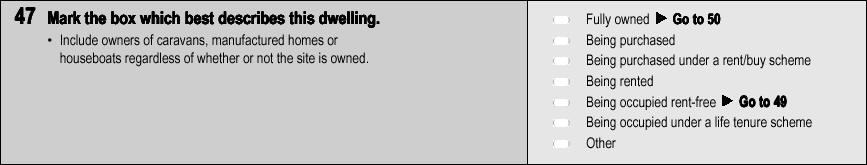 Partial non-response - in some cases where an answer was not provided to a question an answer was imputed or derived (often from other information on the form). In other cases a 'not stated' code was allocated.