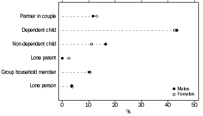 Birthplace of parents Of young people in the Australian Capital Territory who were born in Australia, 35% (21,074) had at least one parent who had been born overseas. Almost 20% (11,898) had at least one parent born in a non-main English-speaking country. Languages spoken at home Just over 12% of young people spoke a language other than English at home. Of these, 13% spoke a Chinese language, and another 9% spoke Croatian. Among people aged 26 years and over, the most common languages spoken at home other than English were Italian (11%) and Chinese languages (10%). Proficiency in English The majority (86%) of young people in the Australian Capital Territory reported speaking English only. Of those young people who spoke another language, 93% reported that they spoke English very well or well. CHAPTER 4 LIVING ARRANGEMENTS Main findings Marital status Almost 13% of 15-25 year-olds in the Australian Capital Territory were married, 6% in a registered marriage, and 7% in a de facto marriage. Young females were more likely than young males to be in a partnership (16% compared with 10%). Living arrangements Just over 43% of 12-25 year-olds were living with their parents as dependent children. This proportion was higher than the national figure of 42% and was exceeded only by Victoria (45%). The Australian Capital Territory also had the lowest proportion (14%) of young people living with their parents as non-dependent children; this compares with the national figure of 20%. The majority of these were aged 20-24 years. Young women were more likely than young men to have moved from the family home, forming partnerships and their own families (16% compared with 8% of young males).