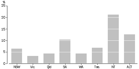 In 1994-95, government expenditure on public housing was $1.6 billion1, and 6% of all households (367,000) were accommodated in public housing. This was up slightly from 5% of households in 1976. The proportion of households living in public housing varied between States and Territories, from 3% in Victoria to 21% in the Northern Territory.