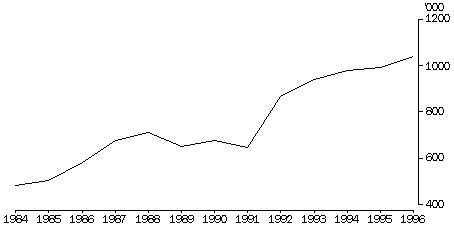 In June 1996, 1,040,000 people were receiving rent assistance, substantially more than the 480,000 in 1984. This increase is related to a widening of the eligibility criteria in the early 1990s, and to an increase in the number of people receiving government pensions and benefits. It is also related to an increase in the cost of renting in the private market (see Housing - national summary table).