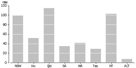 (b) Disputes do not add to total because a dispute may affect more than one industry. (c) Rate per 1,000 employees. Source: Industrial Disputes (cat. nos 6321.0 and 6322.0.40.001). States The number of industrial disputes and working days lost per 1,000 employees varies considerably between the states. In 1994, New South Wales had 230 disputes, Queensland 139 and Victoria 109. Queensland lost 115 working days per 1,000 employees, Northern Territory 103, New South Wales 99 and Victoria 52. Queensland's higher rate can be attributed to mining, particularly coal mining which lost 13,425 working days per 1,000 employees. In 1994, the Northern Territory had only 15 disputes which accounted for 103 working days lost per 1,000 employees. Disputes in mining other than coal mining, and metal product, machinery and equipment manufacturing were the main contributors. In 1994 the method of settlement of disputes also varied by state. Resumption without negotiation was the most common method of settlement of industrial disputes for all states. It was highest in Western Australia accounting for the settlement of 70% of disputes. State legislation and joint federal and federal-state legislation were the least used methods of settling disputes, accounting for 9% and 13% respectively. State legislation was more commonly used in New South Wales accounting for the settlement of 11% of disputes. Federal and joint federal-state legislation were more commonly used in South Australia. WORKING DAYS LOST PER 1,000 EMPLOYEES, 1994 Source: Industrial Disputes (cat. nos 6322.0 and 6322.0.40.001).Endnotes 1 Chapman, B. and Gruen, F. (1990) An analysis of the Australian consensual incomes policy: the prices and income Accord ANU Centre for Economic Policy Research Discussion Paper No. 221. 2 Bentley, P. (1975) Industrial relations Committee for Economic Development of Australia Study M. series No. 40. 3 Hill, J.D. et. al. (1982) Industrial relations: an Australian introduction Longman Cheshire, Melbourne. 4 Stilwell, F. (1986) The Accord and beyond Pluto Press, Sydney. 5 Parkin, M. and Bade, R. (1990) Macroeconomics and the Australian economy, Second edition Allen & Unwin. 6 Phillips, P. (1995) Evaluating the Accord(s): a comparative Canadian perspective Journal of Industrial Relations Vol. 37 No. 4.