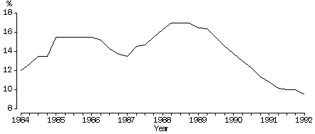 HOUSING AFFORDABILITY INDEX, 1993 Source: Commonwealth Bank and Housing Industry Association Housing Report HOUSE PRICES(a), 1993 (a) House prices are the moving annual median prices of established houses. Source: Real Estate Institute of Australia Ltd Market Facts Monthly Meeting housing needs Factors influencing whether a household is likely to be purchasing or renting are discussed in Housing the population. For a given occupancy status, the proportion of income spent on housing can be used as a broad measure of the ease (or difficulty) that people experience in meeting their housing commitments. However, to the extent that higher housing payments may reflect discretionary savings among home purchasers, care should be exercised in the use of such a measure. In the rental sector, households may choose to pay a higher rent to live close to employment and so reduce travel time and cost. Nevertheless, a comparison of the proportion of income spent on housing for different types of households and levels of income provides insight into those groups most likely to be under financial pressure through housing costs. Between 1982 and 1990, the proportion of income spent on housing increased for both private renters and home purchasers, with home purchasers experiencing the greatest increase. As expected, low income households spent proportionally more of their income on housing than high income households. As well as the cost of housing, affordability is influenced by the level of available income. This may change as the employment status of family members changes, for example, changing from full-time to part-time work or becoming unemployed. It may also change with changes in family composition. Such changes can reduce affordability even though housing costs remain unchanged.