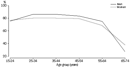 Source: Superannuation Survey Coverage of employed people In 1993 employees were more than twice as likely to have superannuation coverage as self-employed people, 89% compared to 36%. One reason is that self-employed people may be out of the scope of compulsory superannuation legislation. Among those employed part-time, women had much higher coverage than men, 65% compared to 45%. Among people employed full-time, women also had a slightly higher rate of superannuation coverage than men, 87% compared to 85%. However, overall, employed men had higher rates of superannuation coverage than women. This is because a large proportion of women (42%) but only a small proportion of men (8%) work part-time. In 1993 the superannuation coverage of employed people was highest among those aged 25-34 and 35-44 (84%). This was the case for both men and women. Coverage was lowest among people aged 65-74, followed by those aged 15-24. This may be due to higher proportions of part-time workers in these age groups. These were also the only two age groups where women had higher rates of superannuation coverage than men. SUPERANNUATION COVERAGE OF EMPLOYED PEOPLE, 1993 Source: Superannuation Survey Industry and coverage In 1993 rates of superannuation coverage varied widely according to industry of employment. People employed in industries that had high public sector involvement had higher rates of superannuation coverage than those employed in other industries. People employed in electricity, gas and water, and communication had the highest rates of superannuation coverage, 98%, followed by public administration and defence, 96%. People working in the agriculture, forestry, fishing and hunting industry had the lowest superannuation coverage (49%). This reflects the high proportion of self-employed people in this industry. People who worked in the recreation, personal and other services industry also had low rates of superannuation coverage (65%). This is likely to be due to the high numbers of part-time workers in this industry. SUPERANNUATION COVERAGE BY INDUSTRY, 1993