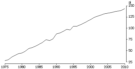 Between 1974-75 and 1995-96, household energy consumption increased by 46% and is projected to increase a further 14% by 2009-10. Per capita household energy consumption also increased between 1974-75 and 1995-96 but is projected to stabilise at current levels by 2009-10.