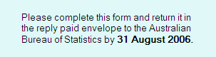 Words Words of more than two syllables should be avoided as much as possible, although length alone should not be the criterion for evaluating their use. Some short words such as redress are not familiar to most people, while other multi-syllable words may be very well known. This does not mean that long words should never be used. However, they are frequently misunderstood by poor readers and this should be taken into consideration in the design. Only an evaluation of the readability of the form e.g. using observational studies or interviews with respondents, will provide the answer. Context The use of words in a particular context may change the meaning. A word when used alone may be quite familiar to people, but when used in a specialised context it may not be familiar. In many cases the reader will have a clearer concept of what is to be filled in if the reasons for wanting the information are known. ABS forms may carry a brief description on the use of the statistics collected. Apart from any legal obligations, respondents may require an indication of why they are required to complete the form, and what ABS will do with the information collected. Technical terms Technical and statistical terms are to be avoided unless you have evidence that respondents understand what they mean. If you do not have this evidence, explain the term in appropriate language. Again, the question here is, do the respondents understand what is meant by technical terms and industry-specific definitions? For example 'leased assets', according to an ABS definition, refers to 'fixed tangible assets leased/hired under a finance lease or leverage lease agreement which effectively transfers from the lessor to the lessee substantially all the risks and benefits incident to ownership'. In short, if technical terms are used, explain them and test them to be sure. Punctuation Punctuation aids comprehension if used correctly. Only commas, full stops and question marks are readily understood by most people. The burning need for a semicolon or a long succession of commas probably means a new sentence is needed. Further information is provided in the Australian Government Style Manual. Summary Just as beauty is in the eye of the beholder, words are what the reader makes them. The meaning ABS attaches to the words may not be the meaning the respondent attaches to them. The only way to find out is to test the words on the respondents.The principles of appropriate language are a solid foundation on which to base our approach to the language used in forms. The principles are not a substitute for testing particular words with particular groups of respondents.