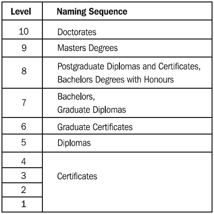 The Register has ten levels and comprises qualifications that are registered according to an agreed set of title definitions.