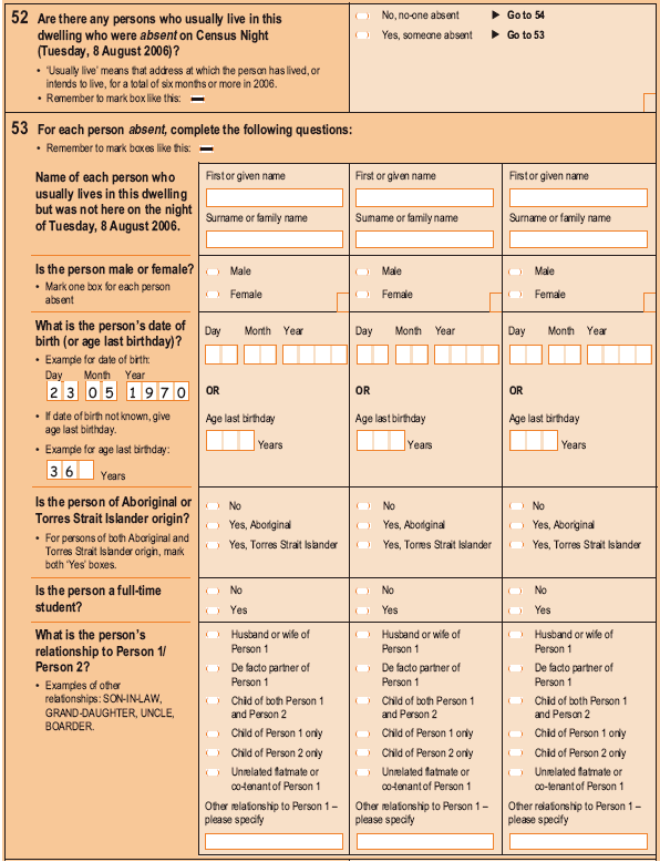 (For people absent from the dwelling on Census Night)