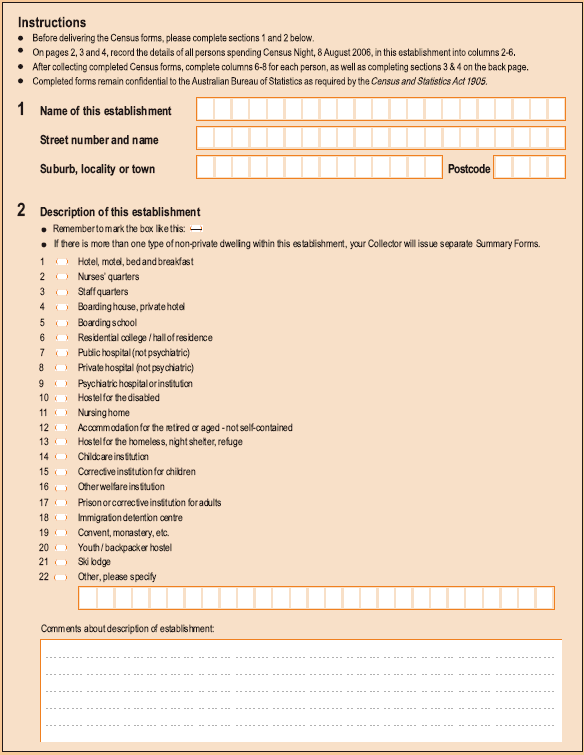 Census data about people residing in non-private dwellings are important for planning and delivery of services. Over 600,000 people were enumerated in non-private dwellings in the 2006 Census.