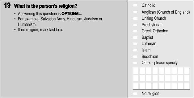 The variable identifies a person’s religious affiliation. Answering this Census question is optional. More Detailed Description