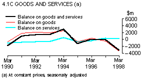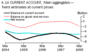 4.1 SELECTED GRAPHS FROM QUARTERLY BALANCE OF PAYMENTS AND INTERNATIONAL INVESTMENT POSITION, AUSTRALIA (CAT. NO. 5302.0), MARCH QUARTER 1998 |  |