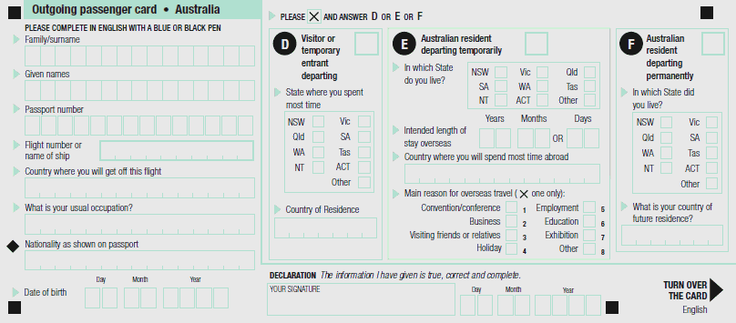 APPENDIX 1 PASSENGER CARDS INCOMING CARD - FRONTOUTGOING CARD – FRONT OUTGOING CARD – BACK Document Selection These documents will be presented in a new window.