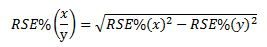 6 Proportions and percentages formed from the ratio of two estimates are also subject to sampling errors. The size of the error depends on the accuracy of both the numerator and the denominator. For proportions where the denominator is an estimate of the number of persons in a group and the numerator is the number of persons in a sub-group of the denominator group, the formula to approximate the RSE is given below. The formula is only valid when x is a subset of y.