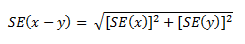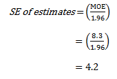 7 Published estimates may also be used to calculate the difference between two survey estimates. Such an estimate is subject to sampling error. The sampling error of the difference between two estimates depends on their SEs and the relationship (correlation) between them. An approximate SE of the difference between two estimates (x-y) may be calculated by the following formula: