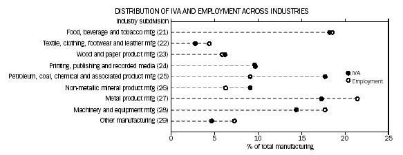 IVA for 1999-2000 was $5,058m. The industry subdivision which contributed the most to Western Australian manufacturing IVA in 1999-2000 was Food, beverage and tobacco manufacturing, followed by Petroleum, coal, chemical and associated product manufacturing. Metal product manufacturing, the industry which had contributed the most in 1998-99, has fallen to be the third ranked industry in 1999-2000. All other industries were ranked in the same order as they were in 1998-99.