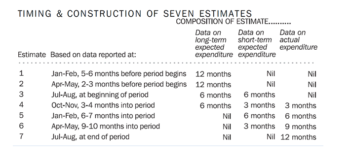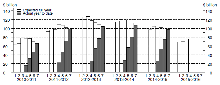 ACTUAL AND EXPECTED NEW CAPITAL EXPENDITURE TOTAL CAPITAL EXPENDITURE Estimate 7 for total capital expenditure in 2014-15 is $150,579m. This is 4.7% lower than Estimate 7 for 2013-14. The main contributor to this decrease is Mining (-15.8%). Estimate 7 is 0.5% higher than Estimate 6 for 2014-15. The main contributor to this increase is Other Selected Industries (+4.0%). Estimate 3 for total capital expenditure in 2015-16 is $114,814m. This is 23.4% lower than Estimate 3 for 2014-15. The main contributor to this decrease is Mining (-37.1%). Estimate 3 is 9.9% higher than Estimate 2 for 2015-16. The main contributor to this increase is Other Selected Industries (+17.2%). BUILDINGS AND STRUCTURES Estimate 7 for buildings and structures in 2014-15 is $97,595m. This is 8.6% lower than Estimate 7 for 2013-14. The main contributor to this decrease is Mining (-16.4%). Estimate 7 for buildings and structures is 1.5% lower than Estimate 6 for 2014-15. The main contributor to this decrease is Mining (-1.7%). Estimate 3 for buildings and structures for 2015-16 is $75,850m. This is 27.0% lower than Estimate 3 for 2014-15. The main contributor to this decrease is Mining (-37.8%). Estimate 3 is 7.4% higher than Estimate 2 for 2015-16. The main contributor to this increase is Other Selected Industries (+18.4%). EQUIPMENT, PLANT AND MACHINERY Estimate 7 for equipment, plant and machinery for 2014-15 is $52,984m. This is 3.6% higher than Estimate 7 for 2013-14. The main contributor to this increase is Other Selected Industries (+9.2%). Estimate 7 is 4.4% higher than Estimate 6 for 2014-15. The main contributor to this increase is Other Selected Industries (+7.7%). Estimate 3 for equipment, plant and machinery for 2015-16 is $38,965m. This is 15.5% lower than Estimate 3 for 2014-15. Both Other Selected Industries (-13.8%) and Mining (-32.2%) contributed strongly to this decrease. Estimate 3 is 15.0% higher than Estimate 2 for 2015-16. The main contributor to this increase is Other Selected Industries (+16.1%). MINING Estimate 7 for Mining for 2014-15 is $76,133m. This is 15.8% lower than Estimate 7 for 2013-14. Estimate 7 is 2.2% lower than Estimate 6 for 2014-15. Buildings and structures is 1.7% lower and equipment, plant and machinery is 5.7% lower than the corresponding sixth estimates for 2014-15. Estimate 3 for Mining for 2015-16 is $54,072m. This is 37.1% lower than Estimate 3 for 2014-15. Estimate 3 is 1.9% higher than Estimate 2 for 2015-16. Buildings and structures is 1.5% higher and equipment, plant and machinery is 4.8% higher than the corresponding second estimates for 2015-16. MANUFACTURING Estimate 7 for Manufacturing for 2014-15 is $8,630m. This is 6.5% lower than Estimate 7 for 2013-14. Estimate 7 is 0.8% lower than Estimate 6 for 2014-15. Buildings and structures is 2.7% lower and equipment, plant and machinery is unchanged by comparison with the sixth estimate for 2014-15. Estimate 3 for Manufacturing for 2015-16 is $7,949m. This is 1.3% lower than Estimate 3 for 2014-15. Estimate 3 is 24.0% higher than Estimate 2 for 2015-16. Equipment, plant and machinery is 24.6% higher and buildings and structures is 22.4% higher than the second estimate for 2015-16. OTHER SELECTED INDUSTRIES Estimate 7 for Other Selected Industries for 2014-15 is $65,816m. This is 12.8% higher than Estimate 7 for 2013-14. Estimate 7 is 4.0% higher than Estimate 6 for 2014-15. Equipment, plant and machinery is 7.7% higher while buildings and structures is 0.8% lower than the corresponding sixth estimates for 2014-15. Estimate 3 for Other Selected Industries in 2015-16 is $52,794m. This is 5.7% lower than Estimate 3 for 2014-15. Estimate 3 is 17.2% higher than Estimate 2 for 2015-16. Buildings and structures is 18.4% higher and equipment, plant and machinery is 16.1% higher than the corresponding second estimates for 2015-16. Document Selection These documents will be presented in a new window.