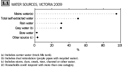 Households in regional Victoria had a higher proportion of self-extracted water, with 66% of households using that source of water, when compared to Melbourne at 45% (388,600 households). The Loddon-Mallee Statistical Region (SR) in central Victoria had a higher rate of households (82%) with self-extracted water.
