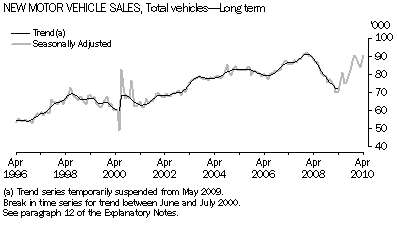 - The new motor vehicle sales trend series has therefore been suspended from May 2009. The trend series will be reintroduced when more certainty emerges in the underlying behaviour of new car sales.