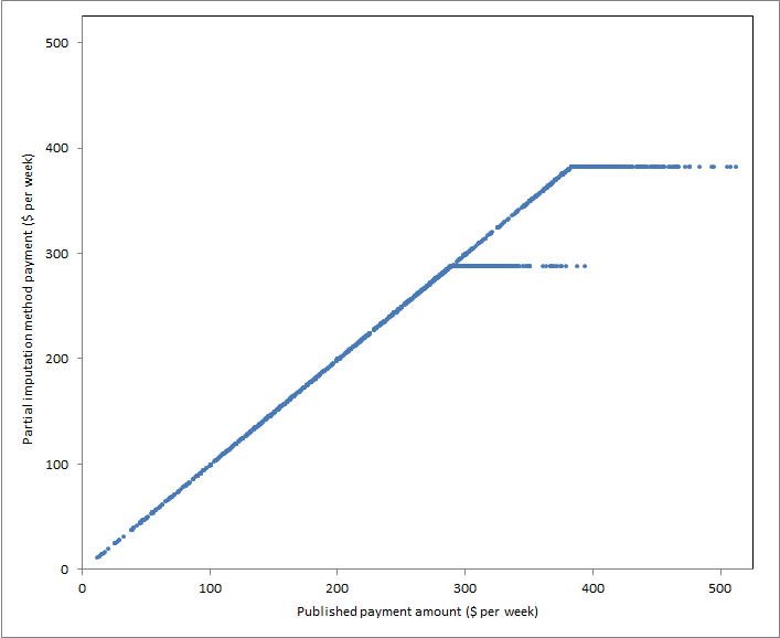 Figure 1: Plot of 2013-14 Age Pension data - partial imputation method by published method
