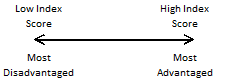 For these reasons, comparing SEIFA over time can lead to misleading results. If you must compare the SEIFA score of an area over time, we recommend the use of deciles, rather than ranks or scores, particularly as scores may imply a level of accuracy that is not provided by a general measure of relative disadvantage like SEIFA. Scores are appropriate only for more technical use. Further, we recommend that the extreme deciles be compared, because these tend to be more stable over time. Due to the complexity of the SEIFA product, we strongly recommend users refer to the supporting documentation described in the Accessibility section below. INTERPRETABILITY SEIFA numbers are ordinal; that is, they can only be used to compare one area to other areas in Australia. A lower number means that an area is relatively more disadvantaged than other areas. The Index of Relative Socio-economic Disadvantage (IRSD) includes only indicators of disadvantage, and therefore should not be used to identify areas of high advantage. The other three indexes contain indicators of advantage as well as disadvantage. Interpretation of Deciles: IRSD Interpretation of Deciles: IRSAD, IER, IEO Due to the complexity of the SEIFA product, we strongly recommend users refer to the supporting documentation described in the Accessibility section below; in particular, Section 1 (Introduction) and Section 6 (Using and Interpreting SEIFA) of the Technical Paper. ACCESSIBILITY SEIFA indexes are available for every Census, from the 1986 Census onwards. The indexes are available free of charge on the ABS website under: Census of Population and Housing: Socio-Economic Indexes for Areas (SEIFA), Australia (cat. no. 2033.0.55.001) Further information for SEIFA 2011 is available in the Technical Paper under the 'Downloads' tab. For all inquiries please refer to the Census Contacts page, or contact the National Information Referral Services on 1300 135 070 from within Australia or +61 2 9268 4909 from overseas. Alternatively, please email client.services@abs.gov.au. Document Selection These documents will be presented in a new window.