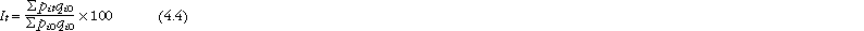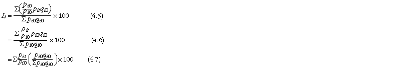 where Vt is the value of all items in period t and V0 is their value in period 0 (the base period). Based on equation 4.1, Vt can be represented as: