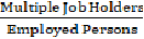 Secondary Jobs and Multiple Job Holders in the Labour Account The Australian Labour Account provides a comprehensive picture of employment and jobs in the Australian labour market by presenting information on secondary jobs, in addition to main jobs. Commencing with the June quarter 2019 release, multiple job holders data will be published in the Persons quadrant of the Labour Account, to provide quarterly information about the people who are working in secondary jobs.In the June quarter 2019 there were 940,000 secondary jobs held by 786,000 multiple job holders, in seasonally adjusted terms. The higher number of secondary jobs, compared to multiple job holders, reflects some multiple job holders with three or more jobs at the same time. Secondary jobs The Labour Account considers any job held by an employed person, other than their main job, to be a secondary job. While aggregate information on the number of secondary jobs is sourced from underlying data from Labour Force, Australia (ABS cat. no. 6202.0), the Labour Force Survey does not record the industry of secondary jobs. The industry distribution of secondary jobs used in the Labour Account is calculated using data from the ABS Linked Employer Employee Dataset (LEED), the data source for Jobs in Australia (ABS cat. no. 6160.0). The published secondary jobs data in the Labour Account for any given industry identifies the number of jobs in the industry that were worked as secondary jobs (as distinct from the main jobs). Over the past nine years, there have been considerably more secondary jobs in the ‘services industries’ than the ‘goods industries’. This partly reflects the number of secondary jobs in the Administrative and support services, Health care and social assistance and Education and training industries. Figure 1: Secondary Jobs by Industry groups (Seasonally Adjusted) Source: Labour Account Australia, Quarterly Experimental Estimates (cat: 6150.0.55.003) The published ‘Proportion of secondary jobs’ is measured as the number of secondary jobs as a proportion of filled jobs. Proportion of secondary jobs = ( The proportion of secondary jobs in the June quarter 2019 was 6.6% compared to 6.3% in September 2010, in seasonally adjusted terms. The proportion of secondary jobs data shows that a 22.1% of filled jobs in the Administrative and support services industry were secondary jobs in June 2019. Interestingly, while the number of secondary jobs held in Health care and social assistance and Education and training industries were closely aligned, the proportion of secondary jobs for the Education and training industry was almost double the proportion of secondary jobs for Health care and social assistance. Figure 2: Proportion of secondary jobs (Seasonally Adjusted) Source: Labour Account Australia, Quarterly Experimental Estimates (cat: 6150.0.55.003) Multiple job holders The recently published multiple job holders data in the Labour Account provides an insight into the number of employed persons in a given industry who work in more than one job. Similar to secondary jobs, multiple job holders are also derived using data from the Labour Force Survey. The industry distribution for multiple job holders is based on data from the Linked Employer Employee Dataset (LEED). Figure 3: Multiple Job holders by Industry groups (Seasonally Adjusted) Source: Labour Account Australia, Quarterly Experimental Estimates (cat: 6150.0.55.003) Consistent with secondary jobs, the number of multiple job holders in the services industries outweighs the goods industries, with gap increasing over time. The largest contribution to multiple job holding in the services industries comes from Health care and social assistance, with 132,000 multiple job holders in June 2019. This was followed by the Education and training, Accommodation and food services and Retail trade industries. Multiple job holder and holding measures To supplement multiple job holders data, the Labour Account publishes two other labour market measures- the Ratio of multiple job holders and the Rate of multiple job holding. Ratio of multiple job holders = ( Rate of multiple job holding = ( The ratio of multiple job holders in the June quarter 2019 was 5.9% compared to 5.7% in September 2010, in seasonally adjusted terms. Similarly, the rate of multiple job holding in the June quarter 2019 was 5.9% compared to 5.7% in September 2010. The ratio of multiple job holders, which is calculated as the proportion of main job holders, indicates that 7.4% of people whose main job was in Health care and social assistance worked in more than one job during June 2019. While Health care and social assistance had the most multiple job holders, the ratio of multiple job holders was highest in the Arts and recreation services (9.1%) and Administrative and support services (8.7%) industries. Figure 4: Ratio of multiple job holders (proportion of main job holders) (%), selected industries (Seasonally Adjusted) Source: Labour Account Australia, Quarterly Experimental Estimates (cat: 6150.0.55.003) The rate of multiple job holding compares multiple job holders and all employed persons. This data showed that 8.3% of all people employed in Arts and recreation services and 7.1% of people employed in Health care and social assistance in the June quarter 2019 were multiple job holders. In contrast to the higher ratio of multiple job holders, 6.9% of all people employed in the Administrative and support services industry were multiple job holders at that time. Figure 5: Rate of multiple job holding (proportion of employed persons) (%), selected industries (Seasonally Adjusted) Source: Labour Account Australia, Quarterly Experimental Estimates (cat: 6150.0.55.003) Other information on multiple job holders and multiple job holding A complementary article in Jobs in Australia (cat. no. 6160.0), shows that for both males and females, multiple job holding rates were highest for those aged 18-20 years. Median 