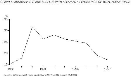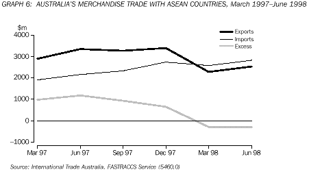 This article traces the growth in merchandise trade between Australia and the member countries of the Association of South East Asian Nations (ASEAN) over the ten year period from 1988 to 1997. An update on performance in the first half of 1998 is also included. After analysing trade flows between Australia and the members of ASEAN, the article focuses on the importance of this trade for Australia in terms of the various commodities exported and imported. Finally, the article analyses commodity flows with selected individual members of ASEAN over the 10 year period.