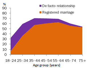 HOW MANY PEOPLE EXPERIENCED THE DIVORCE OR SEPARATION, OR DEATH OF A PARENT IN THEIR CHILDHOOD? The proportion of people who had experienced parental divorce/permanent separation or death during their childhood varied greatly across the generations. These patterns reflect changes in social attitudes towards divorce and improvements in life expectancy over recent decades. Amongst older people, experiencing the death of a parent during their childhood was much more common than experiencing parental divorce. People born in the lead up to World War II are more likely to have experienced parental death as a child, either as a result of the war, or other premature death associated with the lower health standards of that period. Amongst younger people the opposite was the case: experiencing the divorce or permanent separation of parents in childhood was much more common than experiencing the death of a parent. Nearly one in five people aged 75 years and over reported having experienced the death of a parent when they were a child. This compares with about one in ten people aged 55-64 years and about one in twenty aged 18-24 years. PROPORTION OF PEOPLE WHO EXPERIENCED PARENTAL DIVORCE OR SEPARATION, OR DEATH DURING THEIR CHILDHOOD - 2006-07 Source: ABS 2006-07 Family Characteristics and Transitions Survey TRENDS IN DIVORCE Dramatic shifts in social attitudes towards marriage, accompanied by significant changes in the divorce laws during the 1970s, resulted in a greater proportion of children experiencing parental divorce. The Family Law Act 1975 introduced a ‘no fault’ approach which notably changed the divorce trend in Australia. After an initial spike in the divorce rate in 1976 following the change in legislation, the rate has remained relatively steady, albeit at a much higher level than prior to the legislative change. Based on the recent trend in divorce rates it has been estimated that around one-third of all marriages in Australia will end in divorce. (Endnote 2) Around one in four people aged 18-34 years in 2006-07 reported experiencing the divorce or permanent separation of their parents during their childhood. In contrast, less than one in ten people aged 65 years and over had experienced parental divorce or permanent separation before they were 18 years old. Nearly half of all divorces involve children. In 2008 alone, 43,000 children experienced the divorce of their parents. This does not include children who experience the breakdown of their parents’ de facto relationship. (Endnote 3) CRUDE DIVORCE RATE - 1901-2006 (a) Divorces per 1,000 population. Source: ABS Australian Historical Population Statistics, 2008 (cat. no. 3105.0.65.001) RELATIONSHIP STATUS AND OUTCOMES De facto relationships At younger ages, people whose parents divorced or separated when they were a child were much more likely to be in a live-in relationship, particularly a de facto relationship. Almost one-third (32%) of people aged 18-24 years whose parents had divorced or separated (in their childhood) were in a live-in relationship, including 26% who were in de facto relationships. For people the same age whose parents had not divorced or separated, 17% were in a live-in relationship including 12% in de facto relationships. In older age groups, the rates of de facto relationship declined, yet were still higher among the people whose parents had divorced or permanently separated than those who had not. With the relatively high rates of divorce since the 1970s, a preference towards a de facto relationship rather than a registered marriage may be a form of self-protection to avoid the perceived social and economic risks associated with investing in a marriage. This may be especially true if the person has experienced the divorce of their parents as a child. (Endnote 4) Those who have experienced the divorce or permanent separation of their parents as a child were also more likely to have entered into multiple live-in relationships over the course of their life. Accounting for the effects of age, those who had experienced parental divorce/permanent separation were twice as likely (10%) to have had three or more live-in relationships than those who did not (5%).