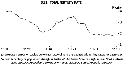 Source: Australian Demographic Trends (3102.0); Births, Australia (3301.0); 'A century of population change in Australia', Professor Graeme Hugo in Year Book Australia 2001 (1301.0).