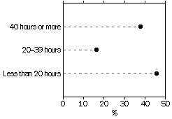 Time spent caring may impact upon a carer’s capacity to engage in paid employment. In 1998, less than half (45%) of all primary carers of working age (15-64 years) were employed. Most of these employed primary carers had not changed their weekly number of hours of paid work since taking on their caring role. However, approximately one fifth were working fewer hours. Almost one in every four employed primary carers aged 15-64 years often needed time off from work because of the role, and 7% had chosen to temporarily leave their job for at least three months to provide care to their main recipient.