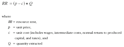 Depletion in an economic sense results because the value of the resource stock has been lowered through its use in a productive activity, and the use has reduced the asset's ability to produce an income stream in the future. In this sense depletion is analogous to depreciation of produced assets whereby the current value of the stock of fixed assets declines from normal use. Physical depletion may not necessarily equate to economic depletion in cases where asset values are low or the resource life is long. While the physical dimension of depletion can be fairly readily observed in practice, its value cannot. This is because the mineral or other natural resource product is not what is being valued-rather it is the decline in the value of the mineral asset below the ground or of the standing timber in the forest. Generally, one has to resort to capital theory to undertake this valuation. In capital theory the value of depletion is a derivative of the amount of the resource extracted and the resource rent. The resource rent is the value of the flow of capital services provided by a natural asset. It is calculated as the value of the output of the natural resource production (e.g. coal, oil) after the intermediate expenses, returns to labour (wages), returns to produced capital (profits accruing from the use of produced capital), and returns to government (taxes) have been removed. Algebraically, the resource rent is represented as: The resource rent in each period is discounted to derive the net present value (NPV) of the natural asset: Depletion can be shown to be equal to the resource rent in the year minus a return (income) on the natural resource asset. Where the total stocks of an asset are unknown, discoveries of new stocks of subsoil assets or growth in biological assets may increase the stock of a resource so that the level of currently exploitable reserves from which the economic valuation is derived is rising rather than falling. How to account for additions is a vexed issue. In the national accounts, the value of mineral exploration is included as a separate produced asset and is therefore in income and GDP. It could be argued that this should be replaced with the actual value of discoveries. The following sections focus on subsoil, land and forest assets respectively. Subsoil assets Subsoil assets are considered to be economic when they have a high geological assurance, extraction is expected to be profitable at the prevailing price and technology, and when they are owned by an economic entity (usually the government). In the Australian balance sheets economic demonstrated resources (EDR) include both proven and probable reserves. Although SNA93 recommends that assets should be valued at their current market price, for many natural assets it is not possible to observe the market price directly as there is little trading of undeveloped stocks in the marketplace. The next best method is to value assets as the net present value (NPV) of the future expected earnings which is theoretically equivalent to the market value. This is the approach that has been adopted in the national balance sheet and in deriving estimates of the value of depletion and additions to subsoil assets presented below. Year-to-year changes in the value of subsoil assets for Australia can be decomposed into revaluations, depletion and discoveries. Revaluations capture the change in prices of the existing stock.