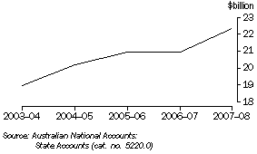 GROSS STATE PRODUCT (GSP) Tasmania's Gross State Product (GSP) reached $20,907 million in 2007-08, an increase of $686 million or 3.4% from the 2006-07 figure of $20,221 million. In 2007-08, household final consumption expenditure was the largest component of total GSP, contributing $12,668 million (60.6%). At the same time, government final consumption expenditure accounted for $4,662 million (22.3%) of GSP. State final demand in 2007-08 increased by 6.8% on the 2006-07 estimate of $20,942 million.