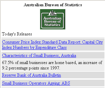 In November 2004, the ABS web site expanded its services and began to provide statistical headlines for each day’s release in Really Simple Syndication (RSS) format.