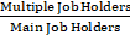 Secondary Jobs and Multiple Job Holders in the Labour Account The Australian Labour Account provides a comprehensive picture of employment and jobs in the Australian labour market by presenting information on secondary jobs, in addition to main jobs. Commencing with the June quarter 2019 release, multiple job holders data will be published in the Persons quadrant of the Labour Account, to provide quarterly information about the people who are working in secondary jobs.In the June quarter 2019 there were 940,000 secondary jobs held by 786,000 multiple job holders, in seasonally adjusted terms. The higher number of secondary jobs, compared to multiple job holders, reflects some multiple job holders with three or more jobs at the same time. Secondary jobs The Labour Account considers any job held by an employed person, other than their main job, to be a secondary job. While aggregate information on the number of secondary jobs is sourced from underlying data from Labour Force, Australia (ABS cat. no. 6202.0), the Labour Force Survey does not record the industry of secondary jobs. The industry distribution of secondary jobs used in the Labour Account is calculated using data from the ABS Linked Employer Employee Dataset (LEED), the data source for Jobs in Australia (ABS cat. no. 6160.0). The published secondary jobs data in the Labour Account for any given industry identifies the number of jobs in the industry that were worked as secondary jobs (as distinct from the main jobs). Over the past nine years, there have been considerably more secondary jobs in the ‘services industries’ than the ‘goods industries’. This partly reflects the number of secondary jobs in the Administrative and support services, Health care and social assistance and Education and training industries. Figure 1: Secondary Jobs by Industry groups (Seasonally Adjusted) Source: Labour Account Australia, Quarterly Experimental Estimates (cat: 6150.0.55.003) The published ‘Proportion of secondary jobs’ is measured as the number of secondary jobs as a proportion of filled jobs. Proportion of secondary jobs = ( The proportion of secondary jobs in the June quarter 2019 was 6.6% compared to 6.3% in September 2010, in seasonally adjusted terms. The proportion of secondary jobs data shows that a 22.1% of filled jobs in the Administrative and support services industry were secondary jobs in June 2019. Interestingly, while the number of secondary jobs held in Health care and social assistance and Education and training industries were closely aligned, the proportion of secondary jobs for the Education and training industry was almost double the proportion of secondary jobs for Health care and social assistance. Figure 2: Proportion of secondary jobs (Seasonally Adjusted) Source: Labour Account Australia, Quarterly Experimental Estimates (cat: 6150.0.55.003) Multiple job holders The recently published multiple job holders data in the Labour Account provides an insight into the number of employed persons in a given industry who work in more than one job. Similar to secondary jobs, multiple job holders are also derived using data from the Labour Force Survey. The industry distribution for multiple job holders is based on data from the Linked Employer Employee Dataset (LEED). Figure 3: Multiple Job holders by Industry groups (Seasonally Adjusted) Source: Labour Account Australia, Quarterly Experimental Estimates (cat: 6150.0.55.003) Consistent with secondary jobs, the number of multiple job holders in the services industries outweighs the goods industries, with gap increasing over time. The largest contribution to multiple job holding in the services industries comes from Health care and social assistance, with 132,000 multiple job holders in June 2019. This was followed by the Education and training, Accommodation and food services and Retail trade industries. Multiple job holder and holding measures To supplement multiple job holders data, the Labour Account publishes two other labour market measures- the Ratio of multiple job holders and the Rate of multiple job holding. Ratio of multiple job holders = ( Rate of multiple job holding = ( The ratio of multiple job holders in the June quarter 2019 was 5.9% compared to 5.7% in September 2010, in seasonally adjusted terms. Similarly, the rate of multiple job holding in the June quarter 2019 was 5.9% compared to 5.7% in September 2010. The ratio of multiple job holders, which is calculated as the proportion of main job holders, indicates that 7.4% of people whose main job was in Health care and social assistance worked in more than one job during June 2019. While Health care and social assistance had the most multiple job holders, the ratio of multiple job holders was highest in the Arts and recreation services (9.1%) and Administrative and support services (8.7%) industries. Figure 4: Ratio of multiple job holders (proportion of main job holders) (%), selected industries (Seasonally Adjusted) Source: Labour Account Australia, Quarterly Experimental Estimates (cat: 6150.0.55.003) The rate of multiple job holding compares multiple job holders and all employed persons. This data showed that 8.3% of all people employed in Arts and recreation services and 7.1% of people employed in Health care and social assistance in the June quarter 2019 were multiple job holders. In contrast to the higher ratio of multiple job holders, 6.9% of all people employed in the Administrative and support services industry were multiple job holders at that time. Figure 5: Rate of multiple job holding (proportion of employed persons) (%), selected industries (Seasonally Adjusted) Source: Labour Account Australia, Quarterly Experimental Estimates (cat: 6150.0.55.003) Other information on multiple job holders and multiple job holding A complementary article in Jobs in Australia (cat. no. 6160.0), shows that for both males and females, multiple job holding rates were highest for those aged 18-20 years. Median 