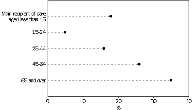 MAIN RECIPIENTS OF CARE WHO LIVE WITH THEIR CARER In situations where the primary carer and main recipient of care were living together, just over one third (35%) of main recipients were aged 65 and over.