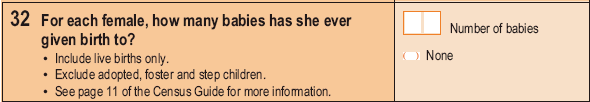 The term 'fertility' is commonly used to refer to the capacity to, or the occurrence of conceiving and becoming pregnant. However, the Census aims to provide a measure of 'demographic fertility', which is related to the number of live born babies each woman has had during her life to the Census date.