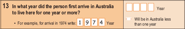 Since the 2001 Census, the question has asked overseas-born respondents to write in the year they arrived in Australia, thereby providing more detailed information than in previous Censuses.
