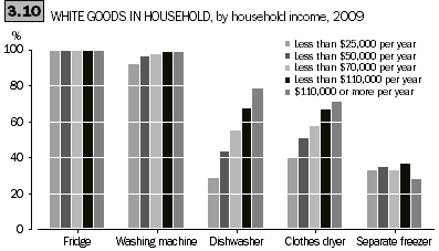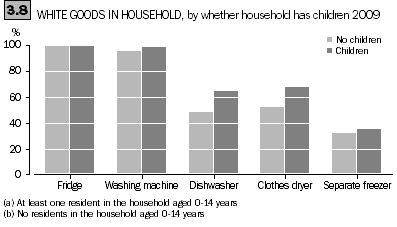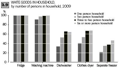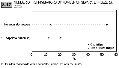 In the period from 1994 to 2008, proportions of households with washing machines, clothes dryers and refrigerators had remained steady, while the proportion of Australian households with separate freezers had decreased slightly. Households were using their washing machine less frequently in 2008 than in 1994 (ABS 2008).