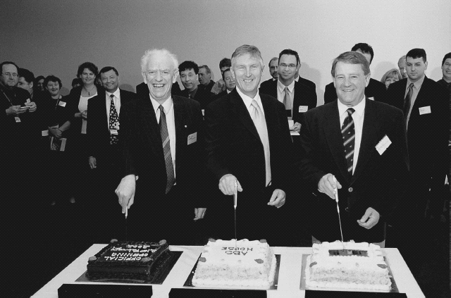 Early 2002 saw a major milestone in the history of the ABS with Central Office staff moving into purpose built accommodation. ABS House provides a modern, professional and well-equipped office environment in keeping with our standing as a leading national statistical agency. The design is compact and concentrates access through two main entries. In addition to ensuring appropriate security of the building and workplace, these arrangements have provided greater opportunity for informal staff interaction. The Treasurer, the Hon. Peter Costello, MP, with the Australian Statistician, Dennis Trewin, officially opens ABS House. Australian Statistician Dennis Trewin, with two former Australian Statisticians, Ian Castles (left) and Bill McLennan (right), at the opening of ABS House. The opening of ABS House on 21 February 2002 by the Treasurer, the Hon. Peter Costello, MP, was a particular highlight for the ABS. The Treasurer emphasised the importance of the work done by the ABS for Australia. In opening the building the Treasurer observed that the move to ABS House was achieved within budget and ahead of schedule and would do much to strengthen the Bureau’s ability to undertake its work. ABS House has already won two significant awards - the first was the 2002 ACT Master Builders Association Project of the Year Award (builders - Bovis Lend Lease Pty Ltd), and the second was the 2002 Royal Australian Institute of Architects, ACT Chapter, Canberra Medallion (architects - Woods Bagot Pty Ltd). ABS House is now eligible for the national judging of both awards.