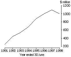 Commonwealth government spending increased in line with this from $291 million in 1990-91 to $1,011 million in 1997-98.4 This was largely due to an increase in Childcare Assistance to providers, particularly long day care centres ($105 million in 1990-91 compared with $481 million in 1997-98). Funding for Childcare Assistance to providers of family day care also increased over this period from $51 million to $126 million. The Childcare Rebate, introduced in the mid 1990s and available to families to subsidise work-related child care costs, accounted for a further $121 million in 1997-98.5