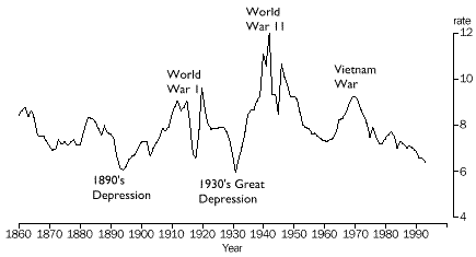 The crude marriage rate in Australia has fluctuated since it was first recorded in the 1860s. Broadly, the crude marriage rate has followed the pattern of prevailing economic and social conditions. It has fallen in times of depression or recession, e.g in the 1890s and 1930s, and increased in times of prosperity such as the gold rush in the 1860s and the immediate post-war years of the early 1920s and late 1940s. Marriage rates have also generally increased during times of war. The lowest recorded crude marriage rate was 6 marriages per 1,000 of the population in 1931 and the highest was 12 per 1,000 of the population in 1942.
