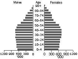 One of the most dramatic consequences of fertility decline is population ageing, which is already manifest in Australia (see Australian Social Trends 1999, Our ageing population). This is the inevitable result of sustained low fertility accompanied by increasing life expectancy. The ageing of the population will change the ratio of old to young, and the proportion of the population who are of working age. These shifts will affect many areas of social and economic activity, forcing change not only in the health and aged-care systems but in labour market structures and skills.