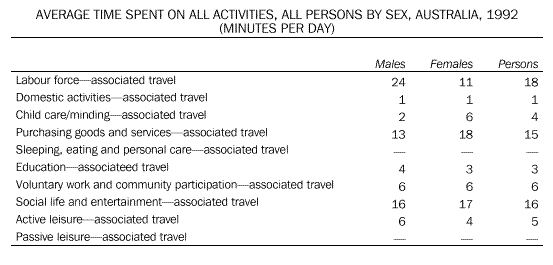 Data are available on travel related to all the broad activity categories.