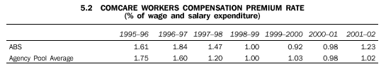 As a result of a small number of high cost journey and legal claims the Comcare premium for 2001-02 has been set at 1.23% of total salary (including GST).